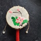 Vintage Hand Held Prayer Drum Double Sided Rawhide Handpainted Onna Stick 8"