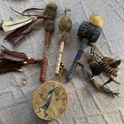 Native American-style Ceremonial Set: Hand Drum (signed Heflin 97) + Rattles ++