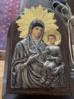 Rare Vtg Greek Orthodox European Electric Wood/metal Religious Mary & Jesus Icon