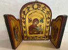 Vtg Small Three-paneled Wooden Hinged Greek Orthodox Triptych Virgin Mary Jesus