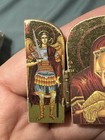 Antique 19th Century Russian Orthodox Bronze Travel Icon Triptych 4"