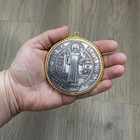 Catholic St Benedict 3” Medal Silver Blue Red Enamel Medalla Medallón San Benito