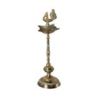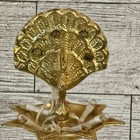 Vintage Set Pair 2 Brass Diya 16 Inch Tall Gold Peacock Oil Lamp Stand Hindu