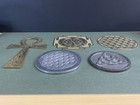 5 Metal Sacred Geometry Symbols Sri Yantra, 2x Flower Of Life, Ankh, Triquetra
