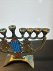 Vtg Mcm Israel Dayagi Brass & Verdigris Enamel Menorah W/maccabi Warriors