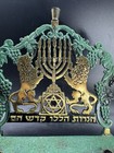 Oppenheim 12 Tribe Verdigris Hanukkah Lion Menorah Israel Brass Gold Tone