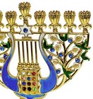 Blue And Gold Enamel Menorah Harp Jeweled Menorah Hanukkah Gift Chanukah 7.5"