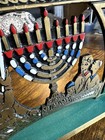 Vintage Hadany Studio Plated Hanukkah Flame Menorah Candle Holder Jerusalem 11”
