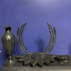 Antique Brass Menorah Tulips Stalks & Flower 7 Candle Holder Head 10×11×5" Korea