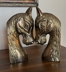 Vintage Mid Centry Modern Bronze Brass 2 Large Horse Head Bookends Pair