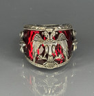 Sterling Silver Ruby Ring: Double Headed Eagle Heraldic Design