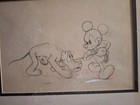 Disney Original Pencil Drawing Mickey Mouse & Pluto 1939 Society Dog Show Coa