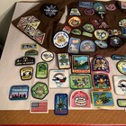 Large Lot Of Girl Scouts Of America Patches Badges & Pins Bag Fabric Tin