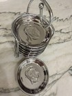 Vintage 1960s Mercury Glass Roman Centurion Coasters Set Of 8 W Chrome Holder
