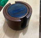 Vintage Set Of 6 Wood Agate Geode Blue Crystal Stone Coasters Mid Century