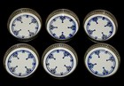 6 Vintage Porcelain Coasters With Silvertone Reticulated Rim Art Deco Design