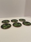 Vintage Argentinian Enameled Copper Coasters Handpainted Leaf Design Set Of 6