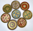 Vintage Box Set Of 8 Florentine Hand Painted & Gilt Wood Coasters Italy 3.5" D