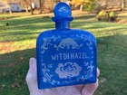 Vintage Witch Hazel Dresser Bottle Glass Stopper Blue Cut To Clear Scenes Nice!