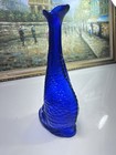 Vintage Cobalt Blue Pressed Glass Decanter Shaped Like A Fish