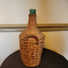 Vintage Wicker Rattan Wrapped Green Bottle 14” High Demijohn Barware