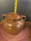 Vintage Brown Glaze Stoneware Crock Bean Pot With Handles And Lid Pottery