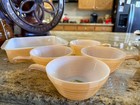 5 Vtg Pyrex Refrigerator Dishes And 3 Lids 2-amish 3-red Lids Have Chips Usa Ma