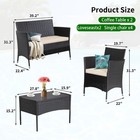 Outdoor Patio Rattan Furniture Set Cushioned Sofa Coffee Table 4pcs Conversation