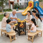 Patio Outdoor Fire Pit Furniture Set Of 5, 4-lovebenches & Fire Pit For Garden