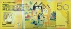 $50 Bluey Cartoon Australia Novelty Gold Foil Plated Note Bill Gn167
