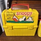 Vintage Have Lunch With Snoopy Go To School Lunchbox Plastic 1968 Thermos Yellow