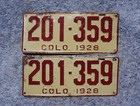 1928 Colorado License Plate Plates Pair / Set - Original Paint
