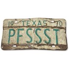 Vintage 1970 Texas License Plate Single Pfssst Green White Novelty