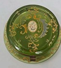Hand Enameled Bohemian Green Glass Pill Box, 2 1/2 X 1 1/4" Ca. 1890
