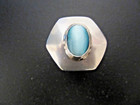 Mexico Sterling Silver 925 Hexagonal Pill Box With A Large Clear Cat Eye Stone