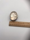 Vintage Mcm Silver Metal & Green Enamel Pill Box Ram Relief 2" Snuff Unique