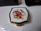Vintage Stratton Enamel Pill Box Floral Design, Box And Storage Pouch