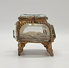Antique French Ormolu Trinket/jewellery Box Bevelled Glass With Silk Lining