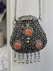 Antique Vintage Purse Hand Bag Shaped Silver Pill Box