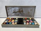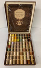 Vtg Lot 36 Wooden Spools Cotton Sewing Thread In Hinged Candy Tin Coats & Clark