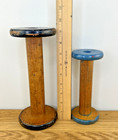 (2) Antique Industrial Wooden Textile Thread Sewing Spools Wood 9.5” Brown J2