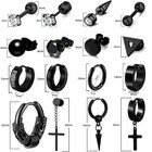 Men Earrings Set -stainless Steel Cross Dangle Hoop & Ear Stud 1, Black