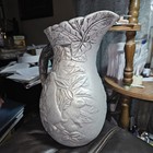 Vintage/antique Enamel Ware Aluminum Pitcher White With Black Rim