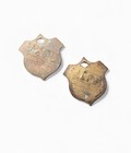 Qty 2 Antique Brass Shield Tag A-c Mfg Co No. 5618 Industrial Check Token 1-3/8"