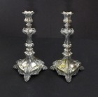Antique Judaica Shabbat (sabbath) Silver Plated Candlesticks Poland C.1890