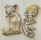 2 Vintage Precious Moments Embroidered Appliques Patches Goose Girl Angel Boy 4"