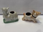 2 Vintage Ceramic/porcelain Animal Pin Cushions For Sewing Sheep / Dog Japan