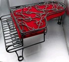 Vintage Victorian Style Pin Cushion Red Velvet Metal Base Leaves Flowers