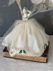 Vintage Japan Porcelain Pincushion Half Doll With Ribbon Skirt