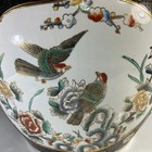 Ceramic Chinoiserie Fishbowl Planter Bird & Flower Motif Satsuma Style Large